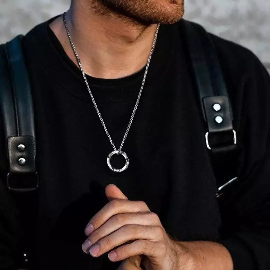 Produzido com metal de alta durabilidade e acabamento polido, o colar oferece resistência, conforto e presença. Seu mobius pingente redondo de 24,5 mm é harmoniosamente equilibrado em uma corrente de 50 a 60 cm, projetada para o uso diário, em qualquer ocasião, da rua à festa.